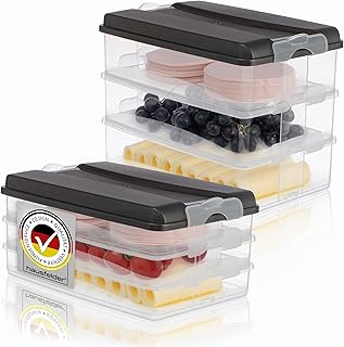 Hausfelder Cold Food Containers for Fridge, Stackable Food Box, Fridge Organiser with Lid (Anthracite, 3 x 2.3 L + 3 x 1.5 L)