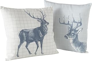 mucHome Deko-Kissen mit Hirsch-Motiv 45 cm Länge Grau und Weiß 2er-Set Kissen Hirschkissen Dekoartikel Wohnzimmer
