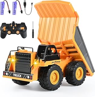 Remote Controlled Dump Truck, Remote Controlled Construction Vehicle for Children with Metal Bed Light Sound and Rechargeable, RC Dumper Truck, Toy Construction Site Vehicle, Dumper Suitable for