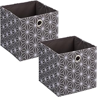 Relaxdays Fabric Storage Box, Set of 2, White Pattern, H 30.5 x W 30 x D 30 cm, Foldable Shelf Basket, Grey/White