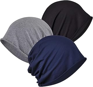 Pack of 3 Beanie, Hat Men Women Thin Slouch Beanie, Cotton Hats for Chemotherapy, Sleep Cap, Headgear Chemo, Thin Slouch Cotton Hat, Breathable Hat, Black, Dark Blue, Grey