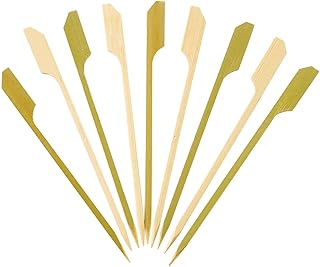 [Pack of 100] 4.7" Bamboo Wooden Paddle Skewers for Cocktails, BBQs, Appetizers, Fruit and Sandwiches..