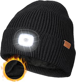 Wmcaps Hat with LED Light, Winter Hat with Thick Warm Lining, Integrated Illuminated Type-C Rechargeable Hands-Free Headlamp, Gifts for Men Women