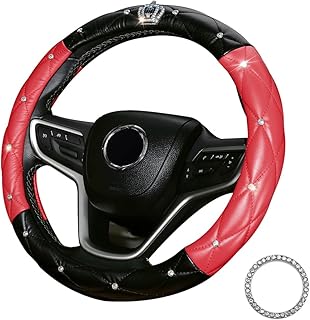 coofig Steering Wheel Cover Glitter Universal Steering Wheel Cover Leather Universal 38 cm / 15 Inch Rhinestone Steering Wheel Cover Breathable Steering Wheel Cover Car Accessories Interior Women