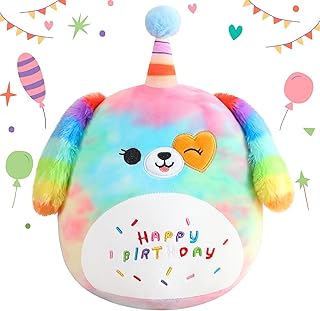 SQEQE Happy Birthday Stuffed Animal 10 Inch Rainbow Dog Soft Toys Cute Plush Pillow Unicorn Dog Plush Toy for Kid Girl Boy 25 cm