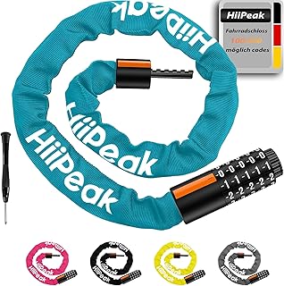 HiiPeak Bicycle Lock High Security with 5 Digit Bicycle Lock Combination Lock 94 cm / 7 mm, Heavy Combination Lock Bicycle, Bicycle Locks Anti-Theft Chain Lock (Blue)