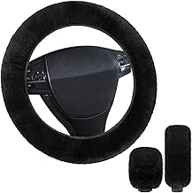 Steering Wheel Cover Plush Steering Wheel Cover Universal Car Steering Wheel Cover Non-Slip Warm Set of 3 Universal Car Plush Steering Wheel Cover for Car Accessories 37 cm - 39 cm (Black)