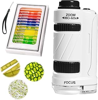 Sponsored You’re seeing this ad based on the product’s relevance to your search query.Learn more about this advertisement Pocket Microscope for Children, 60X-180X Pocket Microscope with LED, Portable Microscope, with 12 Slides, Mini Microscope for Children, Students, Adults, Home, School, Laboratory
