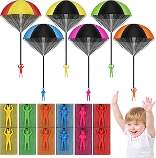 TranRantic Parachute Skater Toy Children, Pack of 12 Parachute Toys Outdoor, Throw Parachute Games for Outdoors, Flight Toy Gift for Boys and Girls (6 Colours)