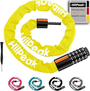 HiiPeak Bicycle Lock High Security with 5 Digit Bicycle Lock Combination Lock 94 cm / 7 mm, Heavy Combination Lock Bicycle, Bicycle Locks Anti-Theft Chain Lock (Yellow)