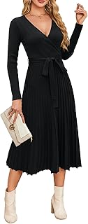 Newshows Knitted Dress, Women's Winter Autumn Long Sleeve V-Neck Winter Dress, A-line, Elegant Jumper Dress