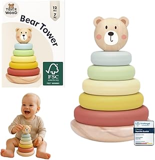 Montessori Stacking Stones & Stacking Tower Made of Wood from 1-2 Years, Motor Skills Toy & Plug-In Game from 1 Year, Stacking Game, Stacking Tower Baby, Gift Baby, Boys & Girls, Wooden Building
