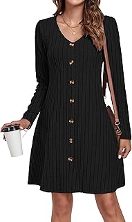 AUSELILY Women's Knitted Dress Decorative Buttons Lightweight Long Sleeve Autumn Winter Dress V-Neck A Line Jumper Dress Dresses