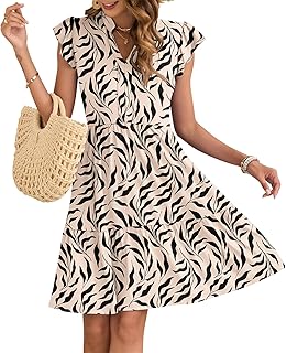 AUSELILY Damen Sommerkleid V-Ausschnitt Kleider Rüschen Ärmel Minikleid Elastische Taille Freizeitkleid mit Taschen
