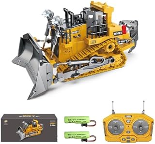 Teeggi Remote Controlled Bulldozer Toy, 9 Channel 1:20 RC Caterpillar Vehicle with Light and Sound Effects, Suitable for Children's Birthday Gifts, 2 Batteries