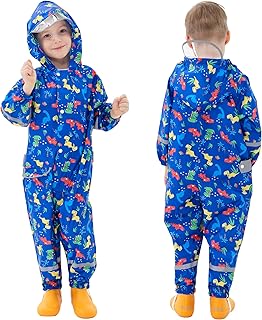 Fewlby Children's Rain Suit - Rain Overall Boys Girls Rain Poncho with Hood Rain Jackets Children Waterproof Raincoat Reusable Outdoor Rain Clothing