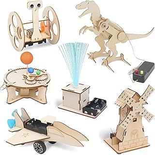 FEMBW Experiments for Children from 8 9 10 11 12, 6 Pieces Building Kit DIY Toy Robot Experiment Box STEM Toy, Wooden Construction Kit Children for Gifts from 8-14 Years Boys