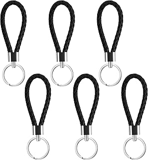 sebudion Pack of 6 Braided Leather Key Fob Leather Key Ring Unisex Black for Car, Motorcycle, Home, Bicycle