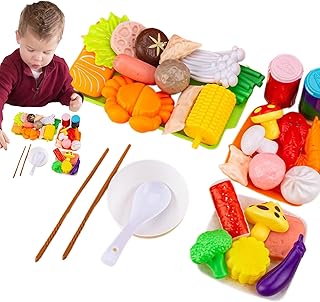 Children's BBQ Toy Set – Children's BBQ Grill Role Play Set Authentic Food Vegetables Board Game for Garden, Park and Nursery