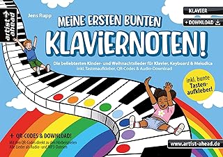 Meine ersten bunten Klaviernoten! Die beliebtesten Kinder- & Weihnachtslieder für Klavier, Keyboard & Melodica (inkl. Tastenaufkleber, QR-Codes & Audio-Download). Bunte Noten für Anfänger. by Jens Rupp