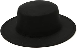 VASANA Fashion Classic Wool Blend Fedora Hat Wide Brim Flat Church Derby Pork Pie Hat Jazz Hat College Men Women Wedding Party Talent Show Performance Black, black