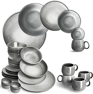 Springlane Misty Cliff 24-Piece Crockery Set, Stoneware Dinner Service for 4 People