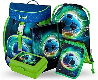 Baagl School Bag Boys from 1st Grade, Airy School Bag Set 5 Pieces, Primary School Backpack for Children, Satchel for School, soccer ball, M