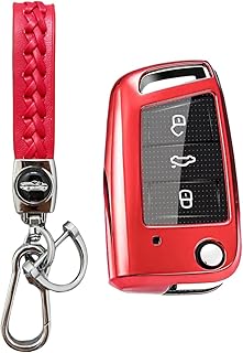 MEDZUK Key Case Compatible with VW T-ROC 2017-2024 2025 Car Key Case Protection, Key Case Accessories with Key Fob (Red)