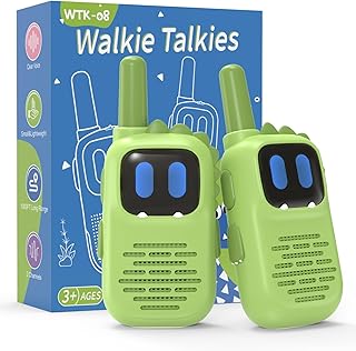 Kearui Walkie Talkie Children from 3 4 5 6 Years, Radio Children with Dinosaur Silicone Case, Lightweight, 2 Channels, Toy 3-12 Years for Children Outdoor (Green)