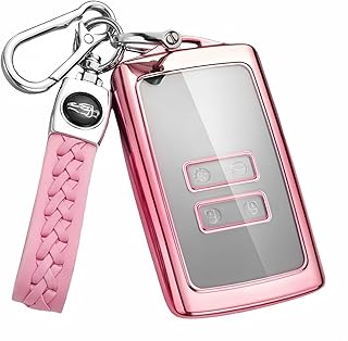 MEDZUK Key Case Compatible with Renault Captur 2 2019-2024 2025 Car Key Case Protection, Key Case Accessories with Key Fob (Pink)