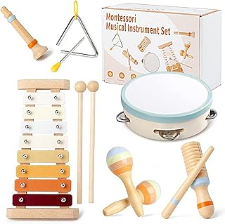 8-in-1 Montessori Musical Instruments Children from 1 Year Wood - Xylophone Drum Triangle Maracas Flute Singing Roll - Educational Toy Baby Music Toy Drum Kit Children's Toy from 2 3 Years