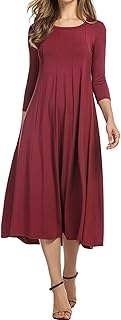 Hotouch Damen Kleider Elegant Tunika Kleid Rundhals Freizeitkleider 3/4 Ärmel A-Linie Kleid mit Taschen Midikleid S-3XL