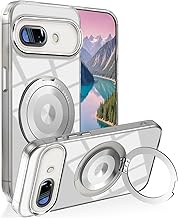 QYFCOU Case for Google Pixel 9a Mobile Phone Case with Camera Protection, 360 Degree Rotation Stand, Military Shockproof Anti-Scratch Protective Case (Transparent)