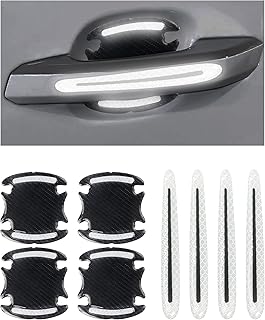 Flaconi Pack of 8 Door Handle Protection Car, Car Door Handle Sticker 3D Carbon Fibre Protective Film Sticker, Car Door Handle Paint Scratch Protection Scratch Protection Film Pad, Warning Sticker for