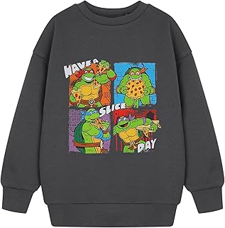 Teenage Mutant Ninja Turtles Grey Sweatshirt for Boys | Pullover with Graphic "Have A Slice Day" | TMNT Children's Clothing | Leonardo, Michelangelo, Don and Raphael | Funny Cartoon Film Merchandise