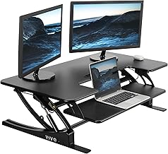 VIVO 107cm Height Adjustable Standing Desk Attachment V Series Fast Stand Sit Table Top for Dual Monitors Black DESK-V000VL