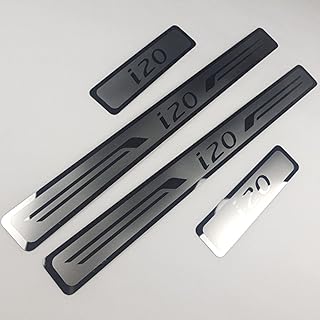 EAGLEG Car Stainless Steel Door Sill Plates for Hyun-dai i20 2015-2019 2020 2021 2022 Tuning Accessories 4 Pieces Car Scuff Plate Door Sill Sticker, Silver