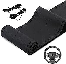 Leather Steering Wheel Cover, Genuine Leather Steering Wheel Cover, Hand-Stitched Steering Wheel Cover Made of Cowhide Leather, Breathable, Universal Steering Wheel Protection, Car for 37-38 cm