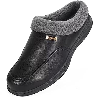 GURGER Leather Slippers Men's Warm Plush Lined Winter Slippers